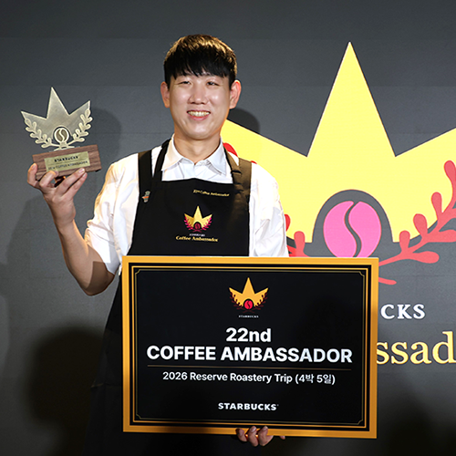 스타벅스 코리아 2026 커피 앰배서더 탄생스타벅스 코리아(대표이사 손정현)가 이달 21일 스타벅스 지원센터(서울 강남구)에서 ‘2026 커피 앰배서더 컵’을 개최해 내년 한 해 스타벅스를 대표하는 최고의 커피전문가인 제22대 커피 앰배서더 1인을 선발했다. 이날 파트너 대상 연중 최대 규모의 커피 축제인 ‘별다방 엑스포’도 함께 진행하며, 스타벅스 커피전문가와 파트너들이