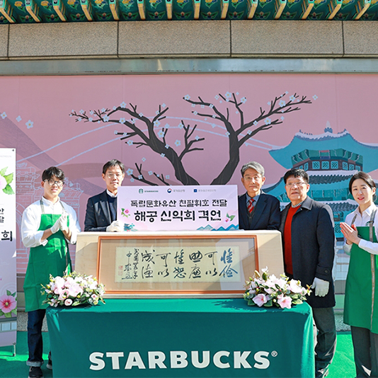 스타벅스, 독립유공자 신익희 선생 친필휘호 및 국가유산 보호 기금 2억 전달식 진행스타벅스 코리아가 삼일절을 앞둔 지난 26일 국가유산청 및 문화유산국민신탁에 독립문화유산 1점과 국가유산 보호 명목의 기부금 2억원을 전달했다.