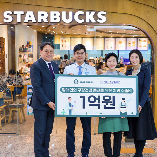 스타벅스, 장애인 위한 치과 수술비 지원 기금 1억 원 전달스타벅스 코리아(대표이사 손정현)가 취약계층 장애인의 구강건강 증진을 위한 치과 수술비 지원 기금 1억 원을 서울대학교치과병원에 전달했다.