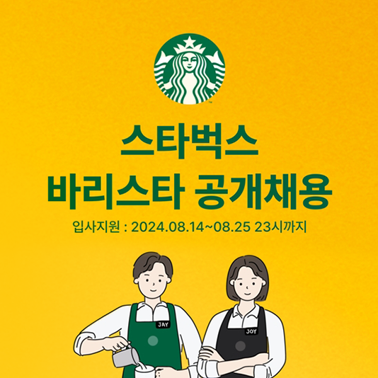 스타벅스, 하반기 바리스타 공개채용 진행스타벅스 코리아(대표이사 손정현)가 오는 25일까지 하반기 바리스타 공개채용을 진행한다.