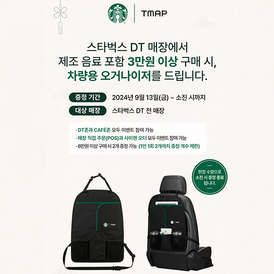 스타벅스 전국 드라이브 스루 매장 차량용 오거나이저 증정 이벤트 진행2024.09.12 -