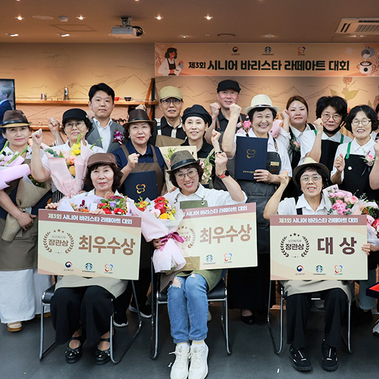 스타벅스, 시니어 바리스타 라떼아트 대회 성료스타벅스 코리아(대표이사 손정현)가 지난 9월 4일 경기도 군포시 군포시니어클럽에 위치한 스타벅스 상생교육장에서 ‘시니어 바리스타 라떼아트 대회’를 개최했다.