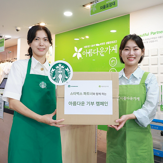 스타벅스, 아름다운가게 기부 캠페인 참여 파트너 올해 1만 명 넘어선다스타벅스 코리아가 재단법인 아름다운가게와 함께 하고 있는 기부 캠페인의 누적 참여 파트너 수가 올해 1만 명을 넘어설 전망이다.