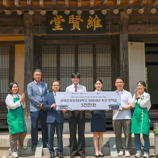 스타벅스, 한국전통문화대학교에 5년간 총 1억 5천만 원 장학금 전달스타벅스 코리아(대표이사 손정현)가 지난 8월 6일 충청남도 부여군에 위치한 한국전통문화대학교에서 전통문화와 국가유산 분야 전문가 양성 후원을 위한 장학금 전달식을 갖고, 3,000만 원의 장학금을 학교측에 전달했다.