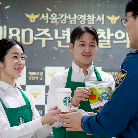 스타벅스, 경찰의 날 맞아 ‘Hero 프로그램’ 활동 전개!스타벅스 코리아(대표이사 손정현)가 지난 10월 21일 경찰의 날을 맞아 공익을 위해 헌신하는 경찰관을 응원하고자 커피, 푸드 지원과 더불어 순직 및 공상 경찰관의 가족을 지원하기 위한 장학금을 전달했다. 이번 활동은 스타벅스가 지난 2월 18일 경찰청, 한국사회복지협의회와 맺은 스타벅스의 ‘Hero 프로그램’ 업무