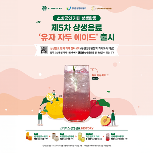 스타벅스, 소상공인 상생음료 ‘유자 자두 에이드’ 판매 호조스타벅스가 소상공인 카페와의 상생협력의 일환으로 진행 중인 상생음료가 높은 인기를 얻고 있다.