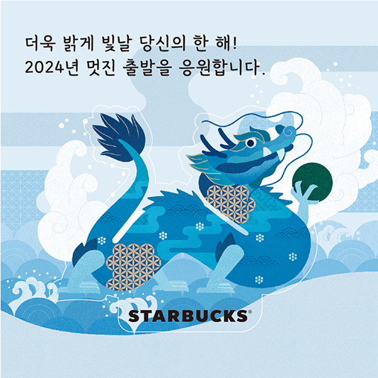 스타벅스, 청룡의 해 맞아 ‘푸른 용 클래식 밀크 티’ 선보이며 다양한 새해 이벤트 진행스타벅스 코리아(대표이사 손정현)는 2024년 새해를 맞아 1월 1일부터 청룡의 해를 표현한 뉴이어 음료 3종 및 푸드 3종 등을 새롭게 출시하고, 매장을 방문하는 고객들에게 다양한 이벤트를 진행한다.