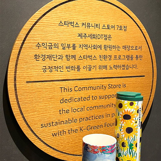 스타벅스, 커뮤니티 스토어 7호점(제주세화DT) 오픈하며, 환경재단과 친환경 협약식 진행스타벅스 코리아(대표이사 손정현)가 제주시 구좌읍에 위치한 ‘제주세화DT점’을 이익공유형 매장인 스타벅스 커뮤니티 스토어로 운영하며 환경재단과 함께 특별한 친환경 활동을 펼친다.
