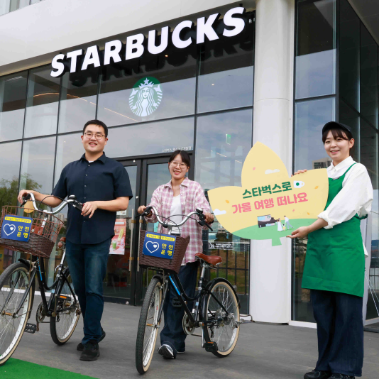 스타벅스, 한국관광공사와 저탄소 여행 활성화 위한 ‘로컬 라이딩 챌린지’ 진행스타벅스 코리아(대표이사 손정현)가 한국관광공사와 손잡고 완연한 가을을 느끼기 위해 자전거 여행을 계획하는 고객들을 대상으로 특별한 라이딩 코스를 소개한다. 스타벅스와 한국관광공사는 저탄소 여행 주간을 맞아 9월 26일부터 10월 25일까지 자전거 여행 활성화 캠페인 ‘투어스(To Earth, To Us): 로컬 라이딩 챌린지’를 전개한다.