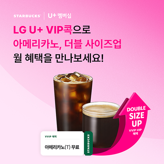 스타벅스, LG유플러스 VIP 이상 고객에게 스타벅스 혜택 제공한다스타벅스 코리아(대표이사 손정현)가 LG유플러스와 신규 멤버십 제휴를 맺고 9월 29일부터 LG유플러스 멤버십 VVIP, VIP 등급 고객에게 제휴 혜택을 제공한다. 앞으로 LG유플러스의 VVIP, VIP 등급 고객은 스타벅스 톨 사이즈 아메리카노 1잔을 무료로 이용하거나, 벤티 사이즈 음료 주문 시 톨 사이즈 가격에 이용하는 더블 사이즈업 혜택 중 한 가지를