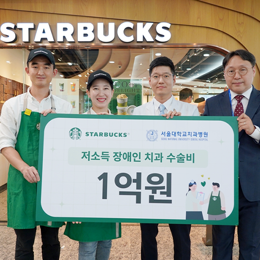 스타벅스, 사회적 가치 실현 위한 장애인 치과 수술비 지원 기금 전달식 진행스타벅스 코리아(대표이사 손정현)가 지난 8일 한국장애인고용공단 및 서울대학교치과병원과 장애인 고용 증진 및 장애인 인식개선 확산을 통한 사회적 가치 실현을 위해 중증 장애 청년 및 희귀 난치성 질환 아동의 치과 수술비 지원 기금 전달식을 진행했다.