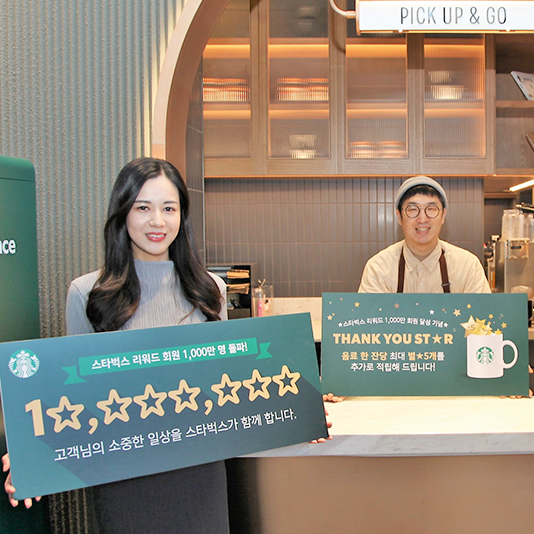 스타벅스, 스타벅스 리워드 회원 1천만 명 돌파스타벅스 코리아(대표이사 손정현)의 로열티 프로그램인 ‘스타벅스 리워드’가 올해로 12주년을 맞은 가운데, 회원 수가 1천만 명을 넘어섰다.