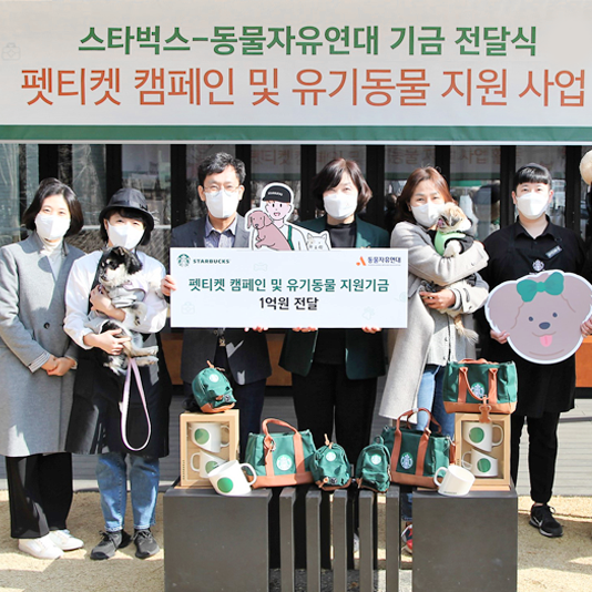 스타벅스, 동물자유연대에 유기동물 지원 기금 1억원 기부스타벅스 코리아(대표이사 송호섭)가 동물자유연대(대표 조희경)와 함께 향후 올바른 반려동물문화 확산 캠페인 등에 공동 협력해 나간다.