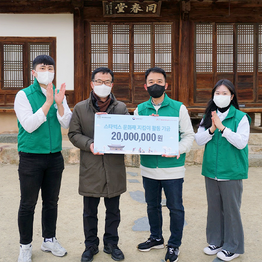 스타벅스, 전국 150명 파트너와 함께 지역 문화재 지킴이 활동 전개스타벅스 코리아(대표이사 송호섭)가 한국문화재지킴이단체연합회(회장 오덕만)와 함께 2월 한달 간 수원화성, 대전 동춘당, 인천향교, 부산 금정산성 등 지역 문화유산을 방문하며 전국 150여명의 파트너들과 함께 문화재 지킴이 활동에 나선다.