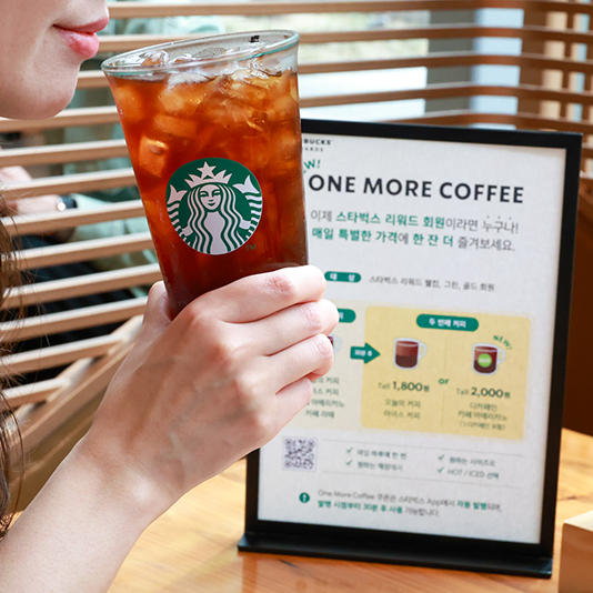 스타벅스, 고객 맞춤형 혜택 ‘원 모어 커피’ 입소문 타고 인기스타벅스 코리아(대표이사 손정현)가 지난 4월 23일 정식 론칭한 ‘원 모어 커피(One More Coffee)’ 프로그램의 일주일 간 고객 패턴을 분석한 결과, 재방문 고객의 빈도가 크게 늘어난 것으로 나타났다.