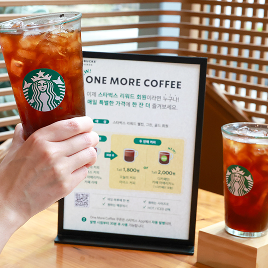 스타벅스, ‘원 모어 커피’ 정규 론칭하며 전 회원 대상 서비스 확대스타벅스 ‘원 모어 커피’가 스타벅스 리워드 회원 모두가 즐길 수 있는 프로그램으로 확대된다.