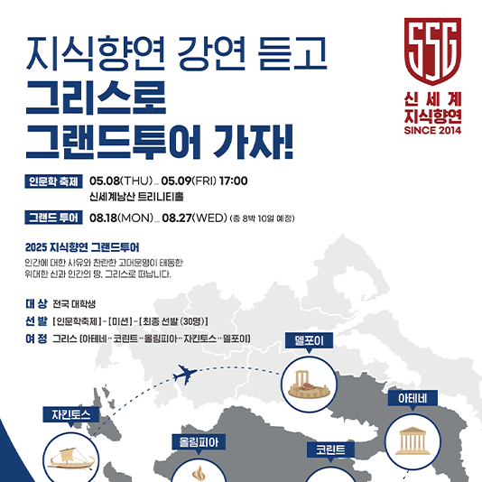 “인문학 소양 갖춘 미래인재 육성! 12년의 뚝심!” 신세계그룹 ‘25년 지식향연’ 위대한 여정 출항신세계그룹이 주최하는 대한민국 대표 인문학 사회공헌 프로그램 ‘지식향연’이 2025년에도 ‘그랜드투어’를 주제로 청년들과 의미 있는 여정을 이어간다.