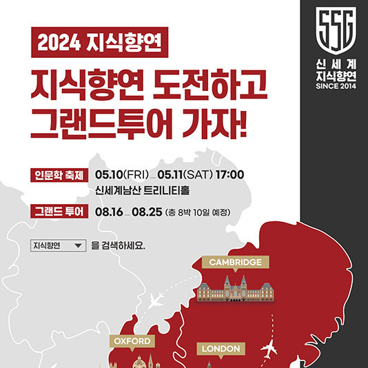 신세계그룹의 인문학 사회공헌 프로그램인 ‘신세계 지식향연’이 오프라인 행사로 돌아온다. ‘2024신세계 지식향연’은 오는5월 10일 인문학 강연을 시작으로, 7월에는 대학생 인문학 인재를 선발하고, 선발된 인재들과 함께 8월 영국 그랜드 투어에 나선다.