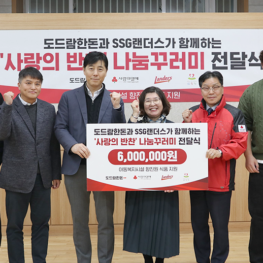 SSG랜더스가 4일(수) ㈜도드람푸드와 함께 인천시 아동복지시설 향진원에서 ‘사랑의 반찬’ 나눔 꾸러미 전달식을 진행했다.