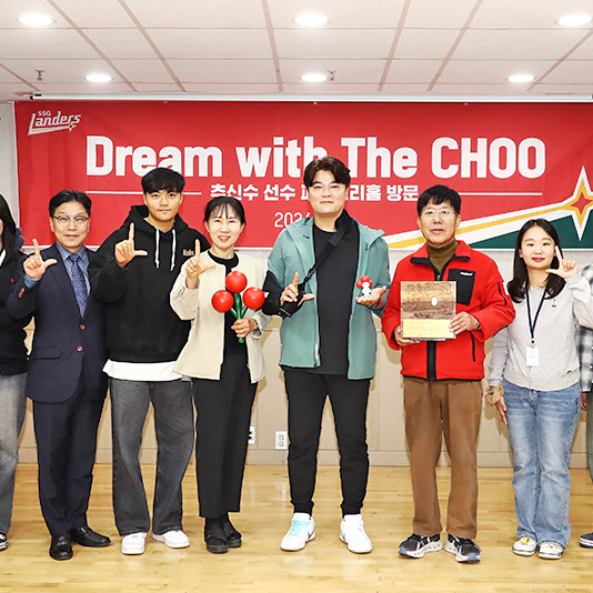 SSG랜더스 추신수, 아동복지시설 ‘파인트리홈’ 방문SSG랜더스(대표이사 김재섭) 추신수 선수가 ‘End & And Choo’ 프로그램을 통해 1일(금) 인천 부평에 위치한 아동복지시설 ‘파인트리홈’을 방문해 아이들에게 꿈과 희망을 전했다.