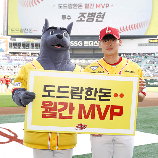 SSG랜더스, 도드람한돈 4월 MVP에 조병현, 최정 선정SSG랜더스(대표이사 민경삼, 이하 SSG)가 4일(토) 인천SSG랜더스필드에서 열린 NC다이노스와의 홈경기에 앞서 ㈜도드람푸드(대표이사 임채권, 이하 도드람)와 함께 ‘도드람한돈 월간 MVP’ 시상식을 진행했다.