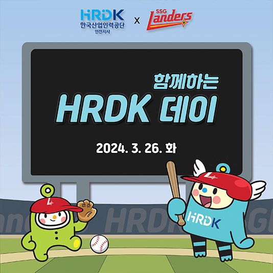SSG랜더스, 한국산업인력공단 인천지사와 ‘함께하는 HRDK 데이’ 진행SSG랜더스(대표이사 민경삼, 이하 SSG)는 26일(화) 인천SSG랜더스필드에서 열리는 한화 이글스와의 홈경기를 맞아 한국산업인력공단 인천지사(지사장 권기목, 이하 HRDK 인천지사)와 ‘함께하는 HRDK 데이’ 행사를 진행한다.