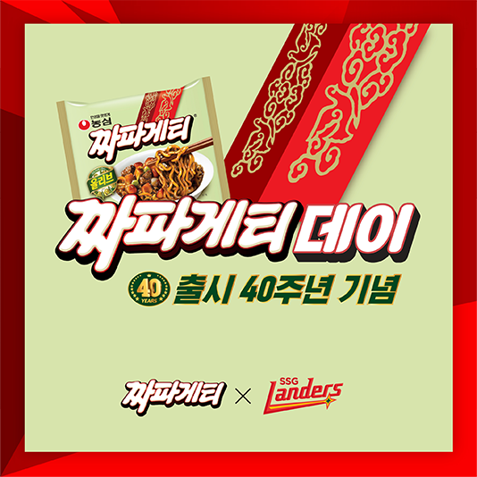 SSG랜더스(대표이사 민경삼, 이하 SSG)가 농심과 함께 다가오는 19일(금)부터 21일(일)까지 인천SSG랜더스필드에서 열리는 LG 트윈스와의 주말 3연전에 ‘출시 40주년 기념 짜파게티 데이(이하 짜파게티 데이)’를 실시한다.