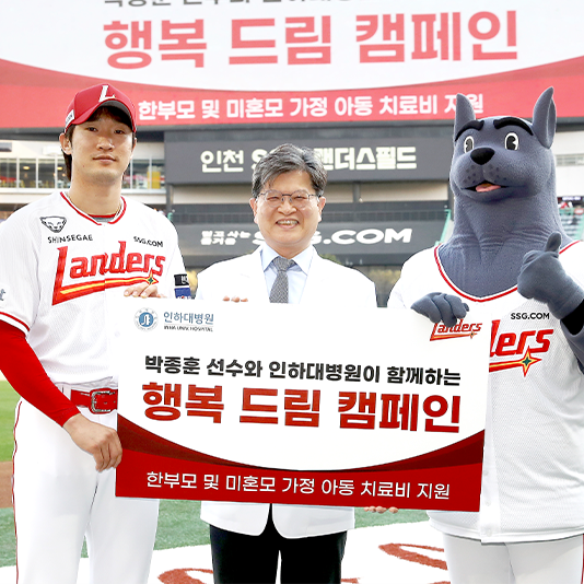 SSG랜더스 박종훈, 인하대병원과 6년째 ‘행복 드림 캠페인’ 실시SSG랜더스(대표이사 민경삼, 이하 SSG)의 박종훈 선수가 인하대병원과 함께 24시즌 ‘행복 드림 캠페인’을 진행한다.