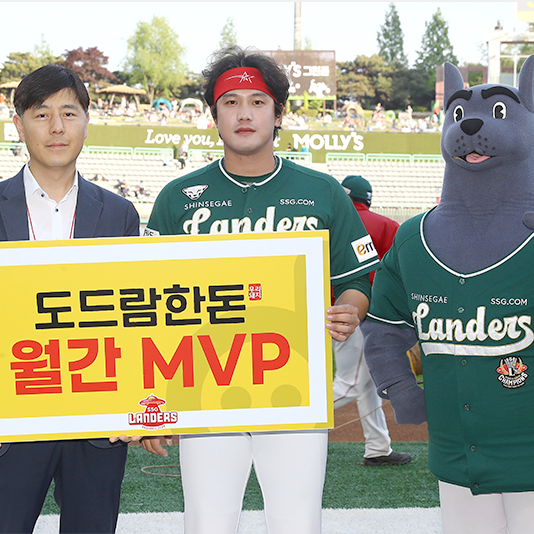 SSG랜더스, 도드람한돈 4월 MVP에 서진용, 최지훈 선정SSG랜더스(대표이사 민경삼, 이하 SSG)가 12일(금) 한화 이글스와의 홈경기에 앞서 ㈜도드람푸드(대표이사 임채권, 이하 도드람)와 함께 ‘도드람한돈 4월 MVP’ 시상식을 진행했다.