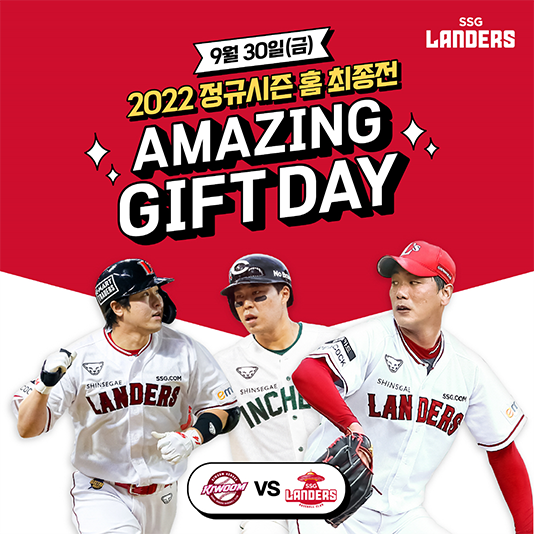 SSG랜더스, 30일(금) 홈 최종전 맞아 ‘Amazing Gift Day’ 진행SSG랜더스가 오는 30일(금) 키움 히어로즈와의 정규시즌 마지막 홈경기에서 그동안 팬들이 보내준 응원에 보답하기 위해 ‘Amazing Gift Day’를 진행한다.