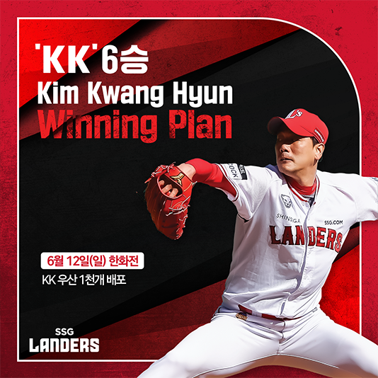 SSG랜더스, 김광현, 시즌 6승 달성에 따른 ‘KK 위닝플랜’ 6단계 실행SSG랜더스(대표이사 민경삼, 이하 SSG)의 김광현 선수가 지난 14일(토) NC전에서 7이닝 1실점으로 시즌 6승을 기록하며 ‘KK 위닝 플랜’ 6단계를 실행한다.
