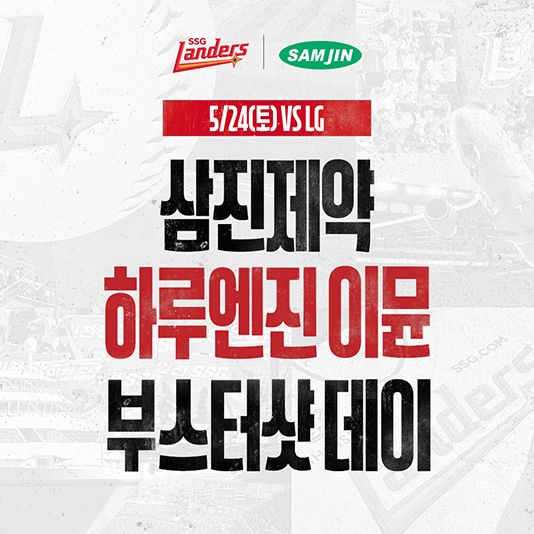 SSG랜더스, 삼진제약과 ‘하루엔진 이뮨 부스터샷 데이’ 이벤트 진행SSG랜더스(대표이사 김재섭, 이하 SSG)가 24일(토) 인천SSG랜더스필드에서 열리는 LG트윈스 전에 삼진제약(대표이사 조규석·최지현)과 함께 ‘하루엔진 이뮨 부스터샷 데이’ 이벤트를 진행한다.