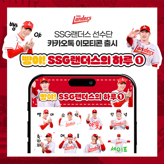 SSG랜더스, ‘빵야! SSG랜더스의 하루’ 카카오톡 이모티콘 출시SSG랜더스(대표이사 김재섭, 이하 SSG)가 6일(금) 카카오톡 이모티콘 ‘빵야! SSG랜더스의 하루’를 출시한다.
