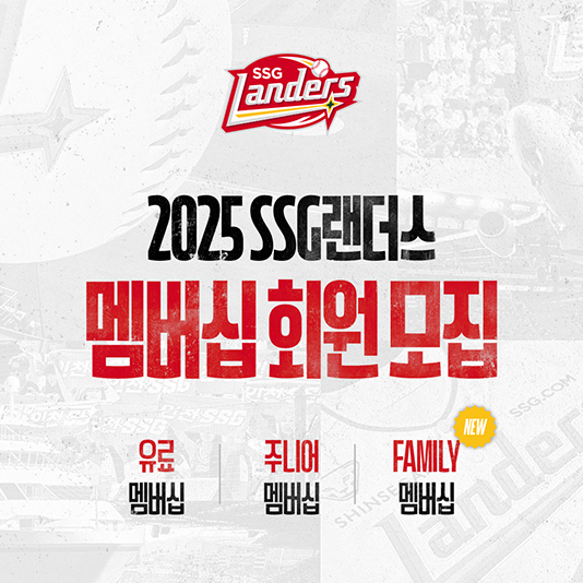 SSG랜더스, 2025 멤버십 회원 모집SSG랜더스(대표이사 김재섭)는 2월 25일(화)부터 2025 멤버십(유료, 주니어, Family) 회원을 순차 모집한다.