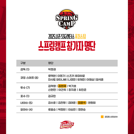 SSG퓨처스팀, 日 가고시마에서 스프링캠프 실시SSG랜더스 퓨처스팀은 2월 10일(월)부터 3월 9일(일)까지 일본 가고시마현에서 28일간 스프링캠프를 실시한다.