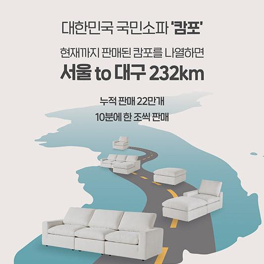 신세계까사, 캄포 소파 ‘누적 판매 22만개 돌파’ 기념 특별 행사㈜신세계까사(SHINSEGAE CASA)가 베스트셀러 소파 ‘캄포(CAMPO)’의 누적 판매 22만개 돌파를 기념해 연말 특별 프로모션 를 실시한다.