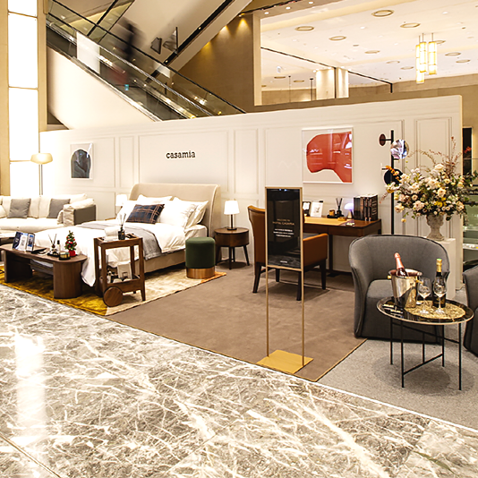 신세계백화점 본점 1층에서 진행되는 팝업스토어는 럭셔리 호텔 라운지 및 스위트룸 콘셉트로 신세계까사만의 차별화된 라이프스타일 공간을 제안한다. 특히, 신세계까사의 광고 캠페인을 장식한 다양한 프리미엄 가구와 베스트셀러 제품들을 활용해 고급스럽고 안락한 분위기의 인테리어를 연출해 눈길을 끈다. 더불어 공간 구석구석 아기자기한 크리스마스 소품들로 채워 연말 특유의 설레는 분위기를 느낄 수 있다.