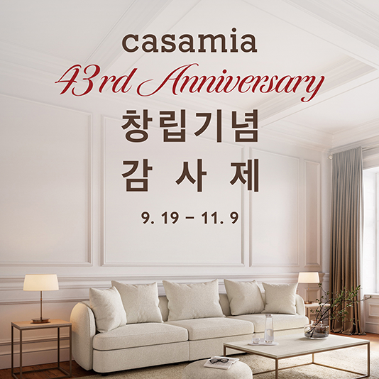 ㈜신세계까사(SHINSEGAE CASA)가 까사미아(CASAMIA) 창립 43주년을 맞아 11월 9일까지 대규모 고객 감사 할인전을 진행한다. 이번 행사는 지난 43년간 까사미아에 보내주신 성원에 보답하기 위해 기획된 프로모션으로, 까사미아와 마테라소 인기 제품을 중심으로 단품 할인, 패키지 특가, 매장 단독 행사까지 폭넓은 혜택을 마련했다. 특히, 결혼과 이사 수요가 늘어나는 가을 성수기를 고려해 소파 ·