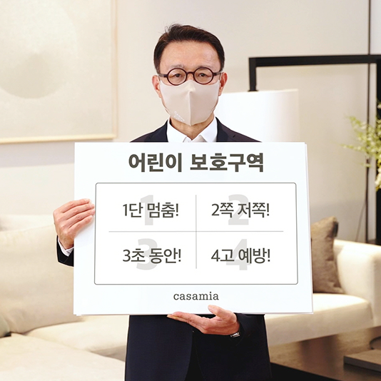 까사미아 임병선 대표, ‘어린이 교통안전 챌린지’ 동참신세계의 리빙&라이프스타일 브랜드 까사미아(Casamia)는 어린이 교통사고 예방을 위한 ‘어린이 교통안전 릴레이 챌린지’에 임병선 대표가 참여했다고 21일 밝혔다. 임병선 대표는 한솔제지 한철규 대표의 지명을 받아 이번 어린이 교통안전 챌린지에 참여하게 됐다. 다음 캠페인 참가자로는 전상수 국회 입법차장과 김세중 (주)동행복권 대표이사를 지목했다.
