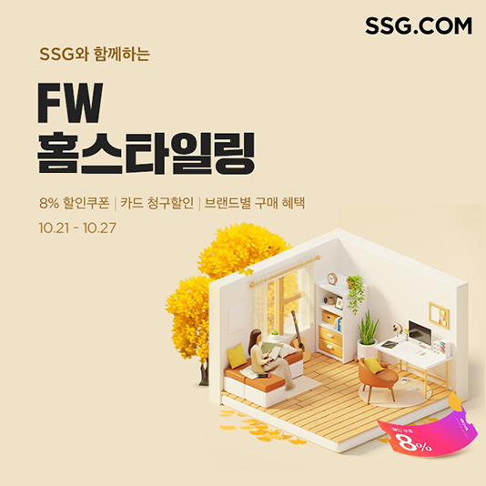 SSG닷컴, FW 홈스타일링 프로모션 진행SSG닷컴이 21일부터 27일까지 1주일간 가구, 주방용품, 인테리어 소품 등 리빙 상품을 특가 판매하는 ‘FW(가을·겨울) 홈스타일링’ 프로모션을 진행한다고 20일 밝혔다.