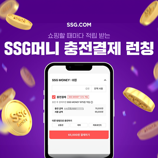 SSG닷컴, 쇼핑할 때마다 적립 받는 ‘SSG머니 충전결제’ 서비스 오픈SSG닷컴이 자체 간편결제 머니인 SSG머니의 충전결제 서비스를 선보인다고 18일 밝혔다. 고객 편익 증대를 위해 결제수단을 다변화하고 높은 적립 혜택을 제공하기 위함이다.