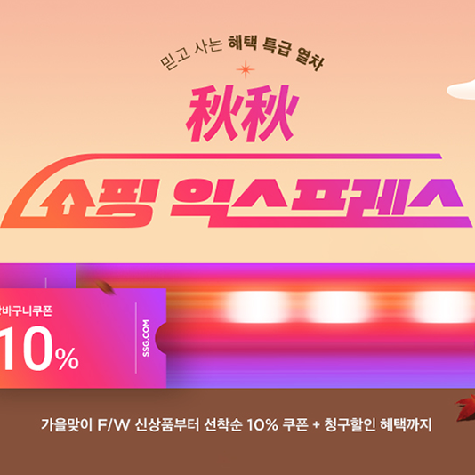 SSG닷컴, 포스트 추석은 쇼핑 최적데이! ‘추추(秋秋) 쇼핑 익스프레스’ 프로모션 진행SSG닷컴은 오는 8일까지 최대 80% 할인하는 ‘추추(秋秋) 쇼핑 익스프레스’ 프로모션을 진행한다고 4일 밝혔다. 추석 연휴 이후 진행하는 첫 대형 행사로, 가을맞이 F/W 시즌 신상품 및 할인쿠폰, 청구할인 혜택 등을 다양하게 준비해 쇼핑 수요를 공략한다.
