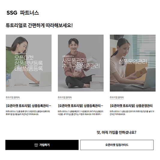 SSG닷컴, 오픈마켓 ‘개봉박두’ 판매자 센터 ‘쓱 파트너스’ 열었다SSG닷컴은 입점 셀러를 위한 ‘쓱(SSG) 파트너스(판매자 센터)’를 연다고 24일 밝혔다. 다음달 20일부터 오픈마켓 시범 운영을 시작하고 시스템 안정화 기간을 거쳐 상반기 중에 해당 서비스를 정식 론칭한다는 계획이다.