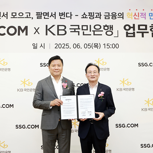 SSG닷컴-KB국민은행 업무협약 체결SSG닷컴이 KB국민은행과 쇼핑, 금융을 결합한 최초의 금융 패키지 ‘쓱KB은행’ 서비스 제공을 위한 업무 협약(MOU)을 체결했다.