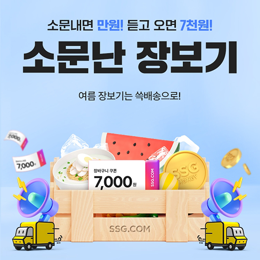 SSG닷컴, ‘소문난 장보기’ 이벤트 실시… “주변에 소문내면 혜택 제공”SSG닷컴은 오는 29일까지 여름 먹거리 특가 행사 ‘소문난 장보기’를 주변에 소문내는 고객에게 할인 혜택을 제공하는 프로모션을 진행한다고 26일 밝혔다.