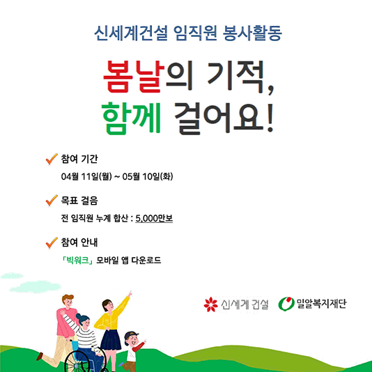 신세계건설, 임직원의 ‘걸음 기부 캠페인’ 행사로 봉사활동 진행신세계건설은 4월11일 부터 5월10일까지 한달간 임직원 ‘걸음 기부 캠페인’을 진행하고 있다. 코로나로 인해 대면 봉사활동이 어려워진 상황에서 임직원이 참여하는 자체행사를 통해 이웃에게 도움을 지원하는 행사이다.