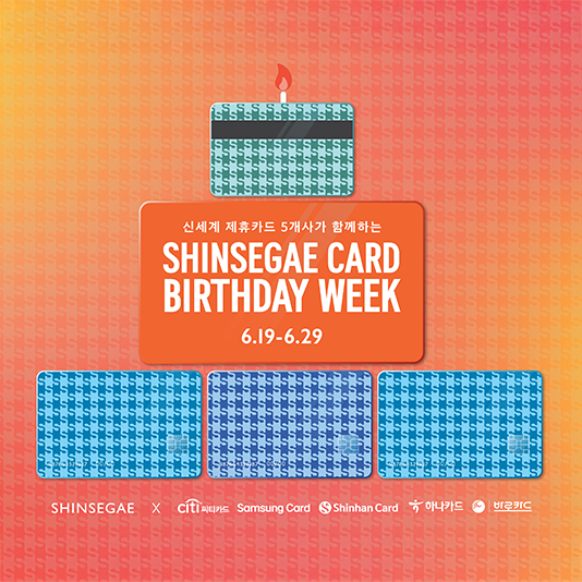 신세계百, 제휴 카드 행사 열고 상반기 최대 규모 혜택 마련신세계백화점이 6월 19일부터 29일까지 제휴카드 56주년을 기념해 ‘신세계 카드 Birthday Week’를 연다.