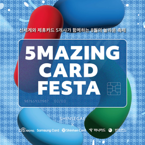 신세계百, 5메이징 카드 페스타와 함께 가을 준비하세요신세계백화점이 8월 21일부터 31일까지 5개의 제휴카드사와 ‘5메이징 카드 페스타’를 열고 풍성한 쇼핑 혜택을 제공한다. ※ 5개 제휴카드사: 씨티, 삼성, 신한, 하나 BC바로 카드 신세계백화점의 대표 사은 행사인 ‘5메이징 카드 페스타’는 업계 최다인 5개의 제휴카드사와 손잡고 사은 행사, 청구 할인, 무이자