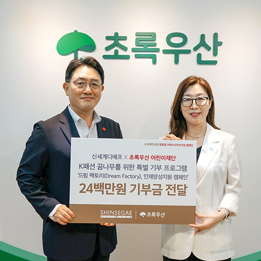 신세계면세점을 운영하는 신세계디에프가 아동복지 전문기관 초록우산과 지난 11일 초록우산 본사에서 ‘K패션 꿈나무’ 지원 기부금 전달식을 진행했다.