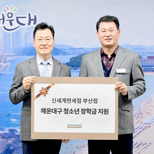 신세계면세점 부산점, 해운대구 청소년 대상 장학금 지원신세계면세점 부산점이 지역 사회 청소년을 위해 지난 12일 희망배달 캠페인으로 조성된 약 500만 원의 장학금을 부산 해운대구에 기부했다.